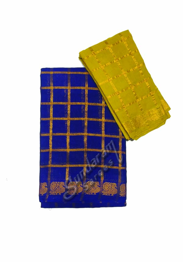 Traditional 100 counts Madurai Sungudi pure cotton Saree with Double side Peacock Jari Border and Jari Check body design with Blouse.